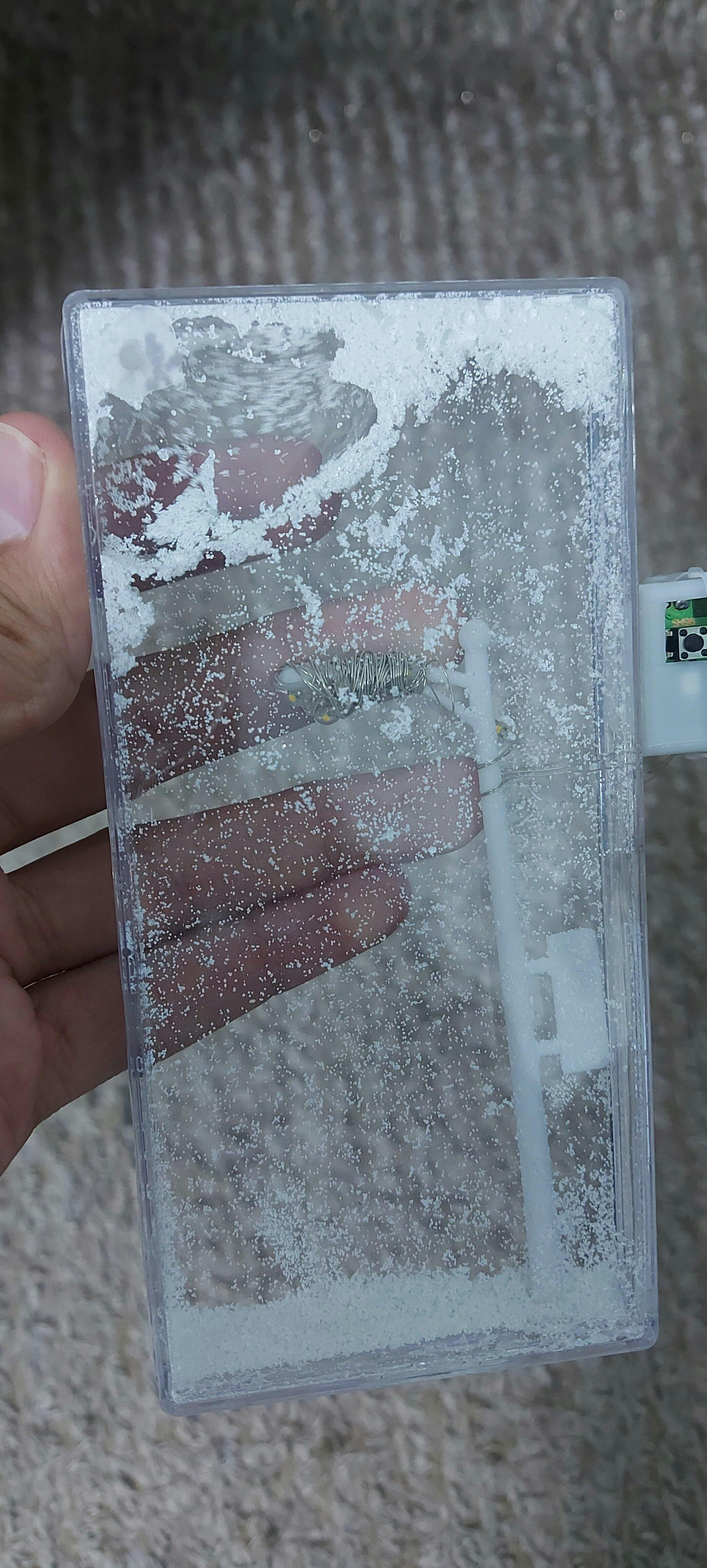 The transparent design allows for a clear view of the snow and lighting details.