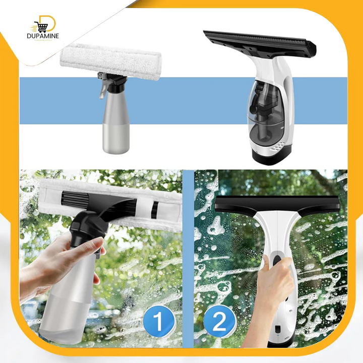 ممسحة نوافذ كهربائية لاسلكية 3 في 1 قابلة لإعادة الشحن مع بخاخ / ممسحة / مكنسة كهربائية