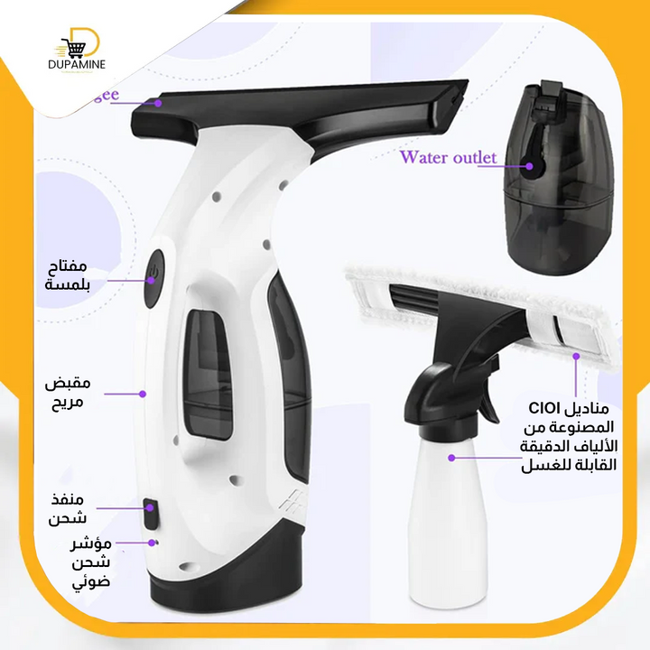تعد ممسحة النوافذ الكهربائية اللاسلكية 3 في 1 جهازًا مبتكرًا يجمع بين القوة والكفاءة وسهولة الاستخدام، لتقديم تجربة تنظيف فريدة ومريحة لجميع أنواع النوافذ والأسطح الزجاجية. صممت هذه الممسحة لتكون حلاً متكاملاً لأعمال التنظيف المنزلي أو المكتبي، حيث توفر وظيفة البخاخ، الممسحة، والشفط الكهربائي في جهاز واحد، مما يقلل من الحاجة إلى أدوات متعددة ويضمن نتائج مثالية بسرعة وكفاءة.