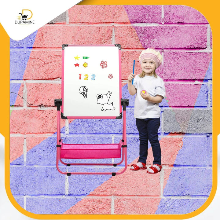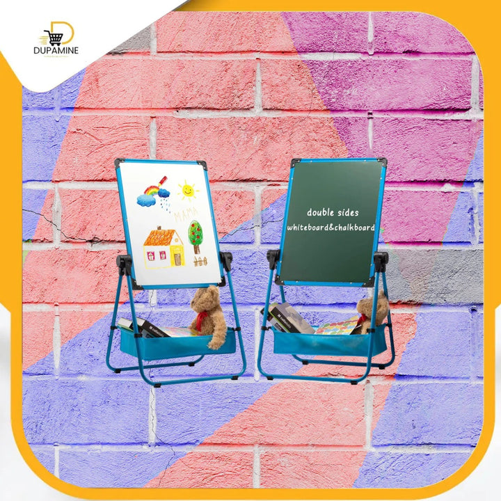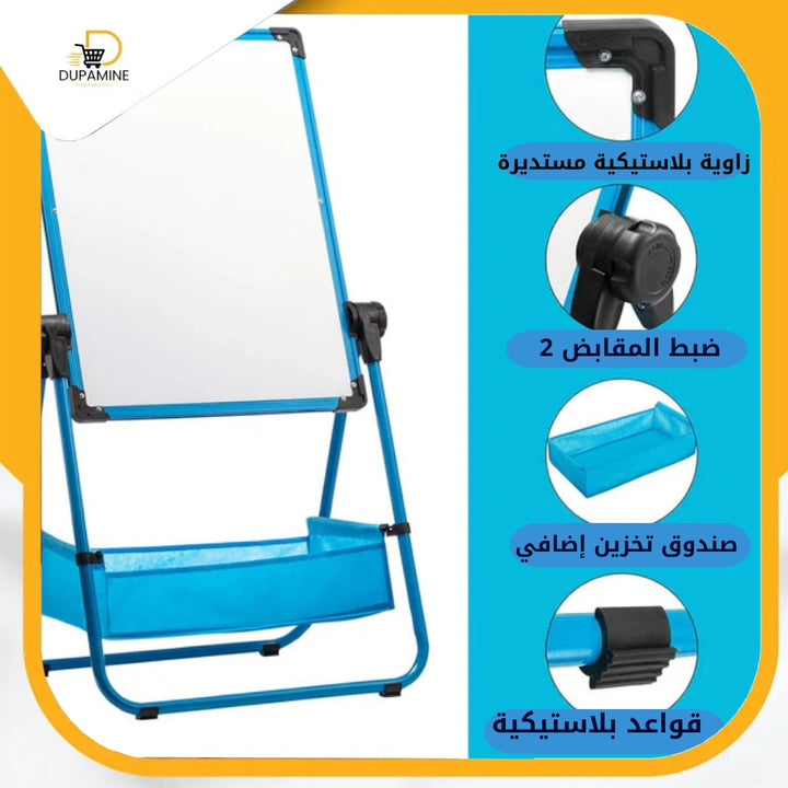 🪑 تحويله إلى مكتب عملي: بفضل تصميمه الذكي، يمكن قلب اللوح واستخدامه كطاولة أو مكتب صغير للرسم، المذاكرة، أو القيام بالأنشطة اليدوية.