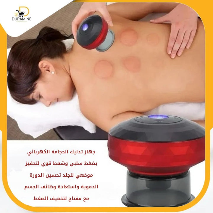يساعد جهاز الحجامة في تعزيز تدفق الدم إلى المناطق المعالجة، مما يساهم في زيادة التروية الدموية للأنسجة، ويساعد على تجديد الخلايا وتحسين صحة الجلد. -