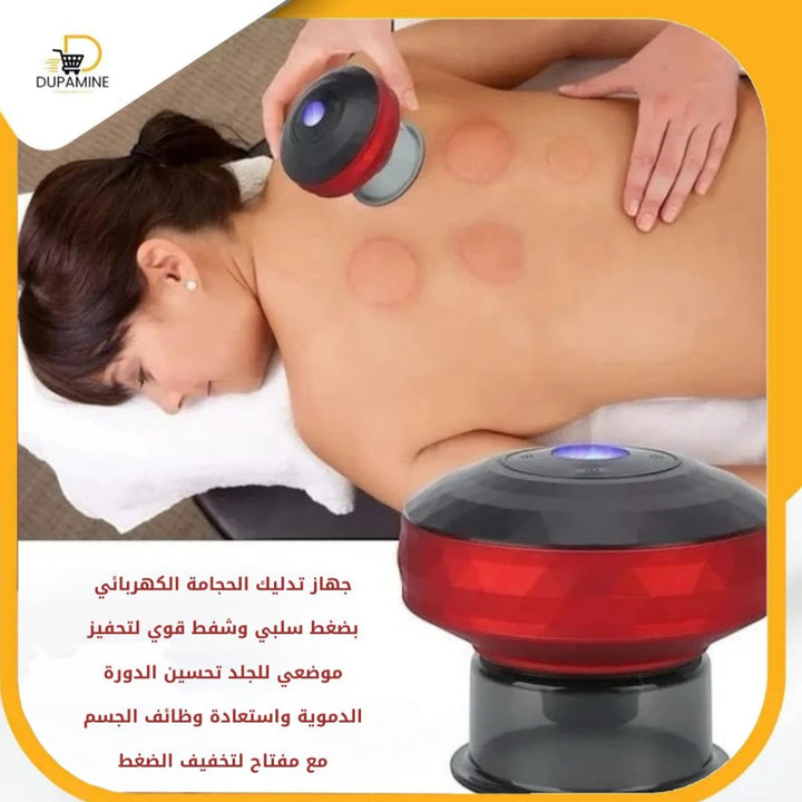 يعمل الجهاز باستخدام تقنية الشفط الهوائي التي تمثل الأساس في العلاج بالحجامة. حيث يقوم الجهاز بإنشاء ضغط منخفض فوق الجلد، مما يساعد في سحب الأنسجة المحيطة تحت سطح الجلد، ويحفز الدورة الدموية في تلك المناطق. هذا الضغط يعمل على استرخاء العضلات وتحفيز الخلايا على تجديد نفسها. يمكن التحكم في قوة الشفط وعدد الجلسات، مما يمنح المستخدم مرونة كاملة في تخصيص العلاج بناءً على احتياجاته.