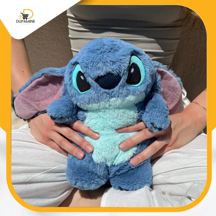 🧸 تصميم لطيف وآمن: تأتي مغلفة بغطاء ناعم على شكل شخصية "ستيتش"، ما يجعلها آمنة على الجلد وناعمة الملمس – مثالية لاحتضانها أثناء النوم.