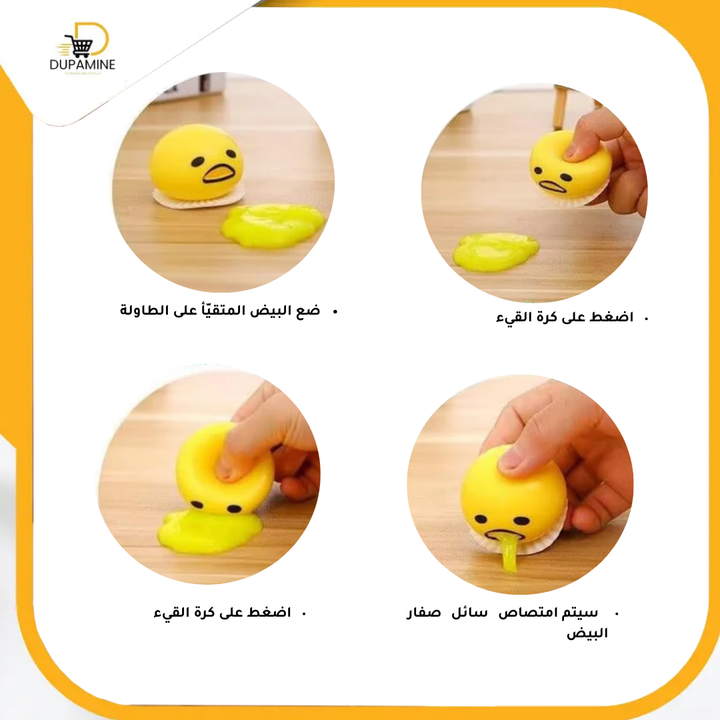 عند الضغط على الكرة، تخرج منها مادة صفراء لزجة تشبه القيء، ما يضيف عنصرًا من الفكاهة والمتعة.