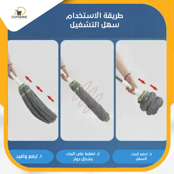 اجعلي مهمة تنظيف الأرضيات أسهل وأسرع مع الممسحة المبتكرة بتقنية الدوران 360°.
